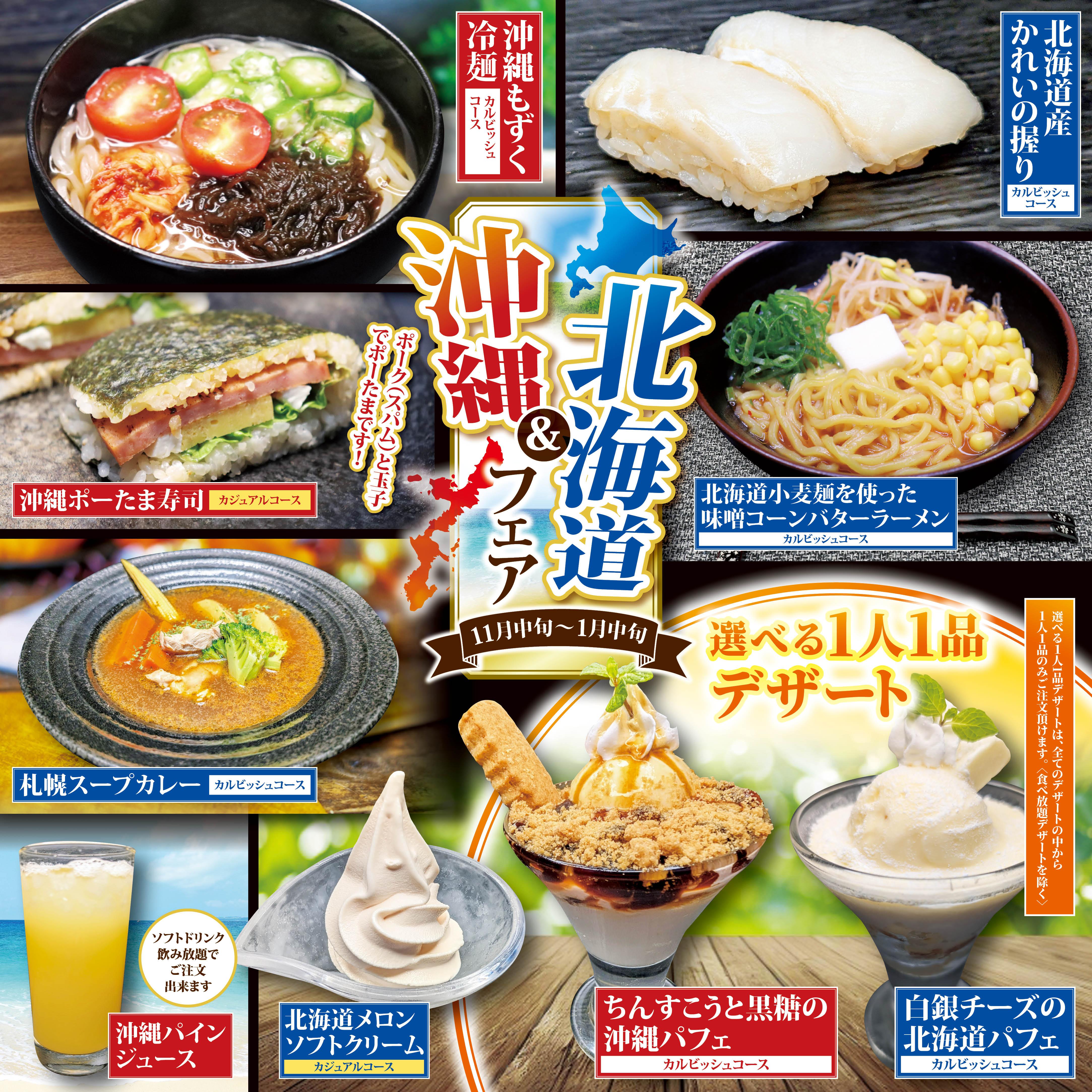 ※沖縄ポーたま寿司と北海道メロンソフトクリームはカジュアルコースから食べ放題。その他のメニューはカルビッシュコースからご利用いただけます。