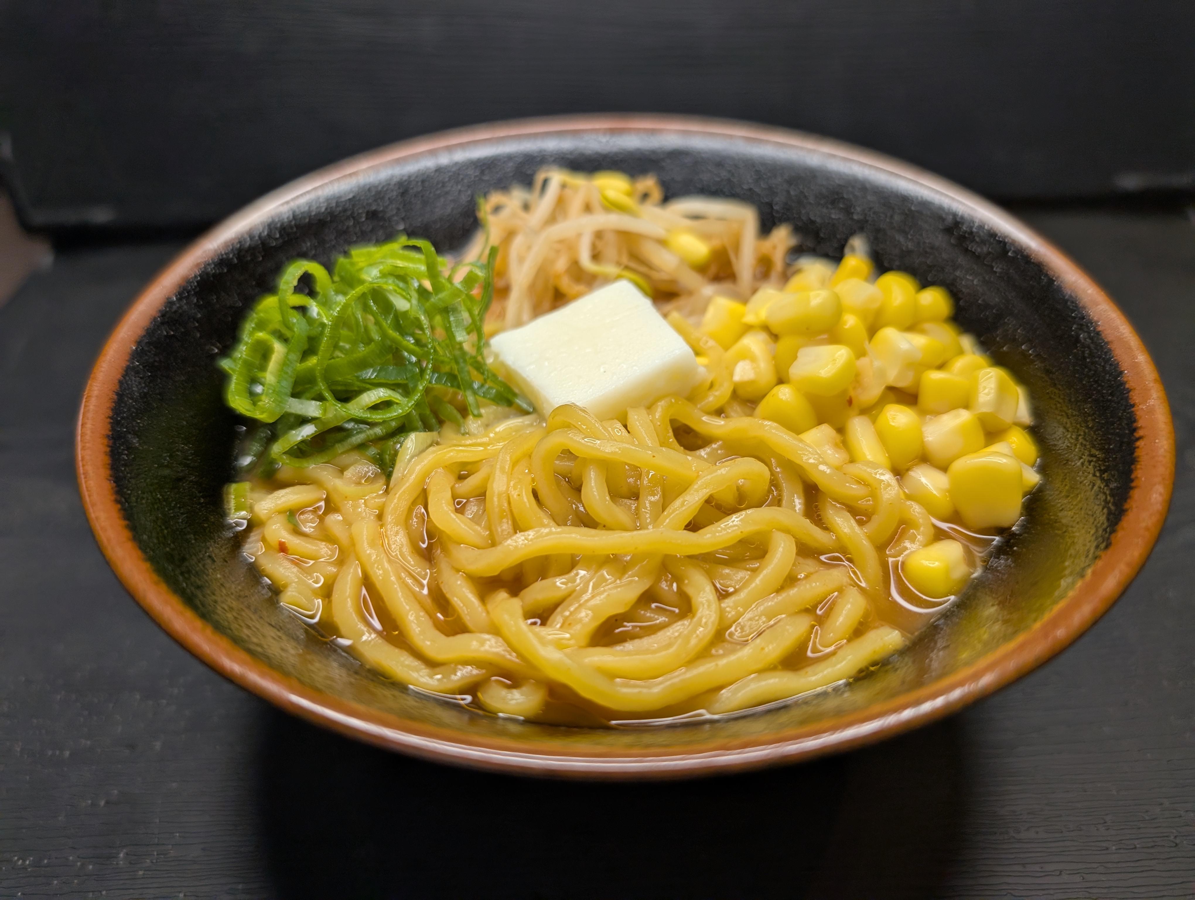 北海道産小麦麺を使った味噌バターコーンラーメン